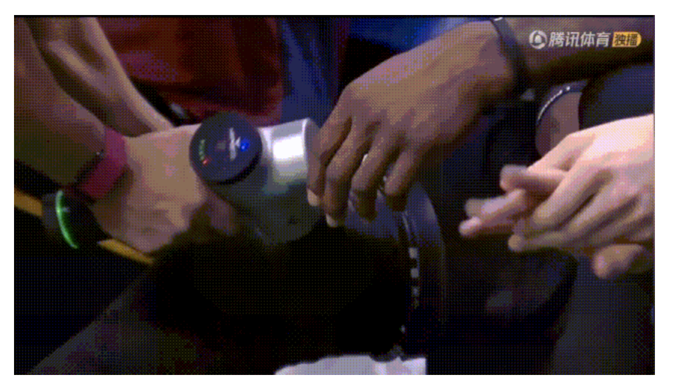 收到傳票后,蘇州菠蘿健康科技有限公司委托三聚陽光和易聚律所應(yīng)訴并提起無效宣告請(qǐng)求。然而經(jīng)過多日檢索,搜遍了各數(shù)據(jù)庫都未能找到2018年2月22日之前公開的類似設(shè)計(jì)。律師們正在深入檢索之際,一位NBA球迷提供了線索,稱曾在2018年2月的NBA比賽轉(zhuǎn)播中,看到過詹姆斯用十字形的筋膜槍放松。群眾的眼睛是雪亮的,在某視頻網(wǎng)站找到了這段錄像:2018年2月12日的NBA常規(guī)賽中,果然有球隊(duì)工作人員使用一款筋膜槍為詹姆斯按摩膝蓋的鏡頭。