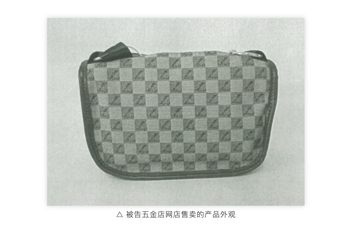 說回這個案子。單看兩個圖形,可以認定五金店產(chǎn)品上的圖形與原告的商標構(gòu)成了近似商標。但以上兩個產(chǎn)品圖片中的棋盤格風格的包,它們的外觀最明顯的特征,您覺得是格子中“Z”和“L”這樣的字母,還是重復、棋盤式的排列方式?