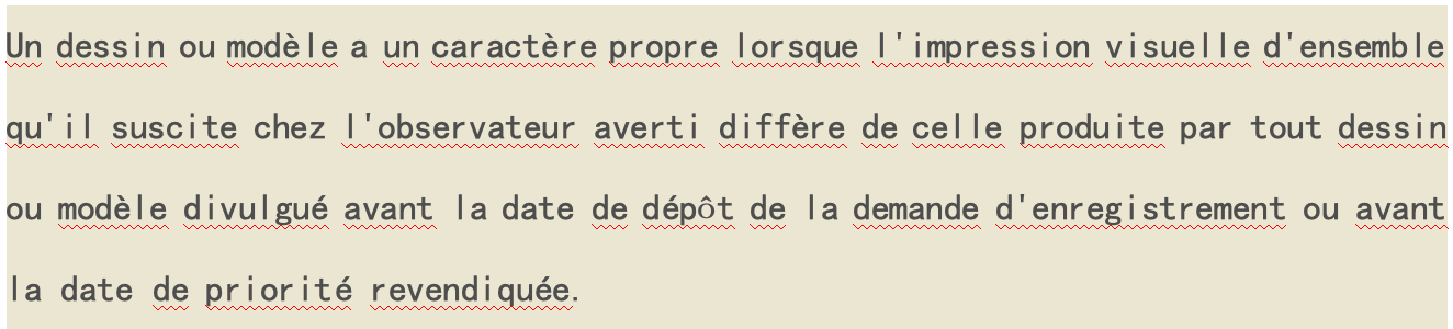 法國《知識(shí)產(chǎn)權(quán)法典》第L511-2條規(guī)定,只有新穎且獨(dú)特的外觀設(shè)計(jì)才能受到保護(hù)。