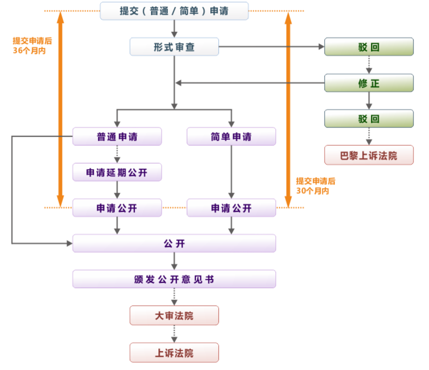 法國外觀設(shè)計(jì)申請(qǐng)分為普通申請(qǐng)和簡單申請(qǐng)兩種形式。INPI的審查結(jié)束后,針對(duì)不同的申請(qǐng)形式,公開的時(shí)間也不同。
