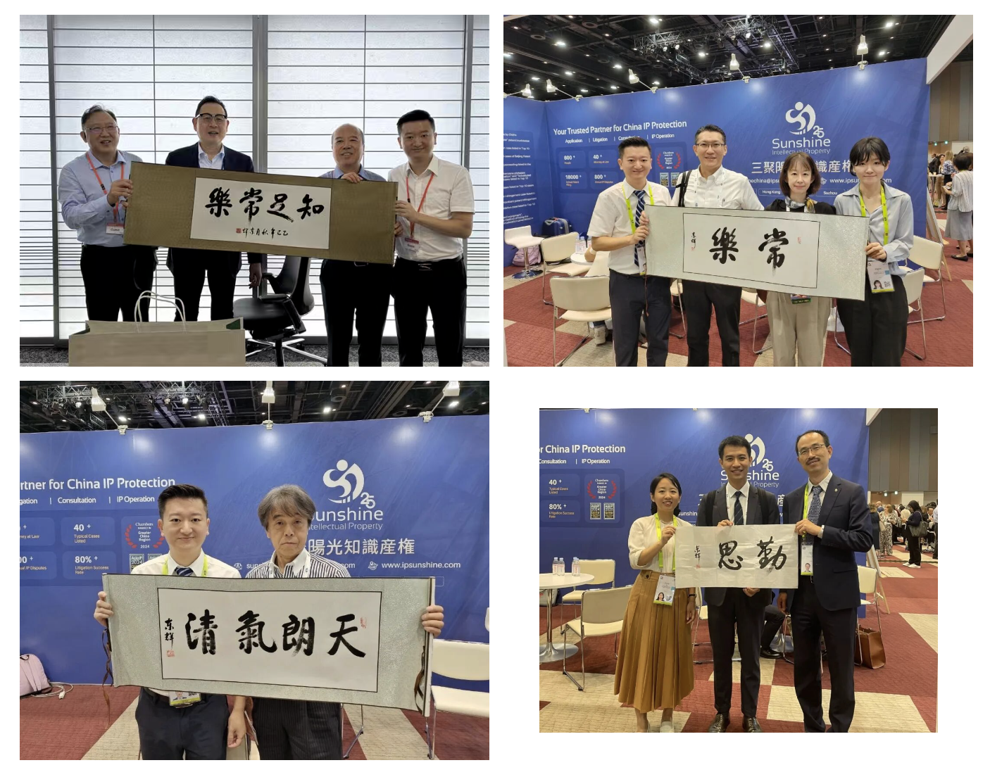 為進(jìn)一步增進(jìn)文化交流、傳遞友好情誼,三聚陽(yáng)光副總裁高東輝現(xiàn)場(chǎng)揮毫潑墨,以中國(guó)傳統(tǒng)書(shū)法書(shū)寫(xiě)“天朗氣清”“知足常樂(lè)”等寓意美好的詞句,贈(zèng)予來(lái)訪嘉賓,贏得了國(guó)際同行的由衷贊嘆。這也成為本次展會(huì)中一道獨(dú)具韻味的文化風(fēng)景線,生動(dòng)詮釋了知識(shí)產(chǎn)權(quán)領(lǐng)域跨越國(guó)界的理解、尊重與合作精神。