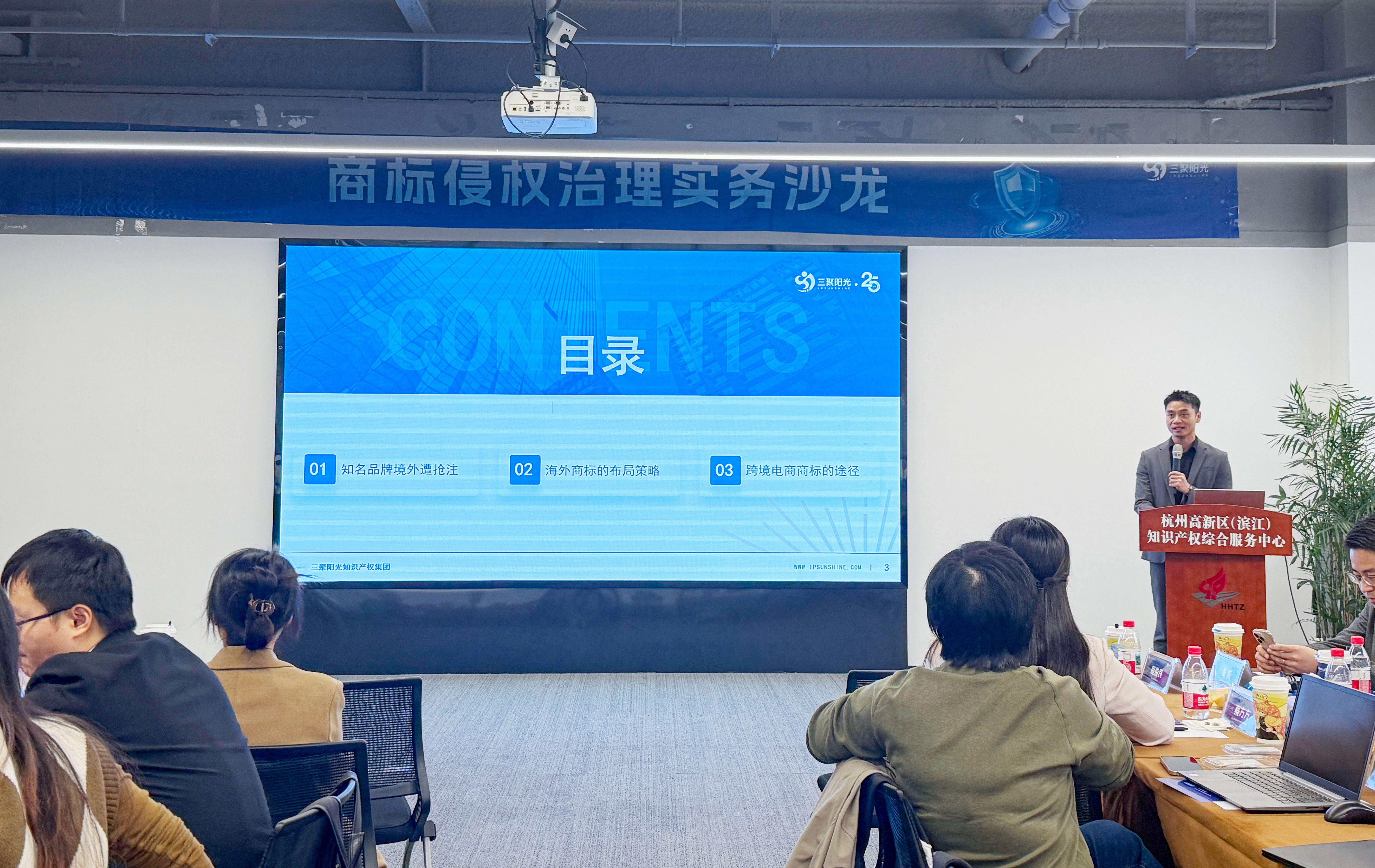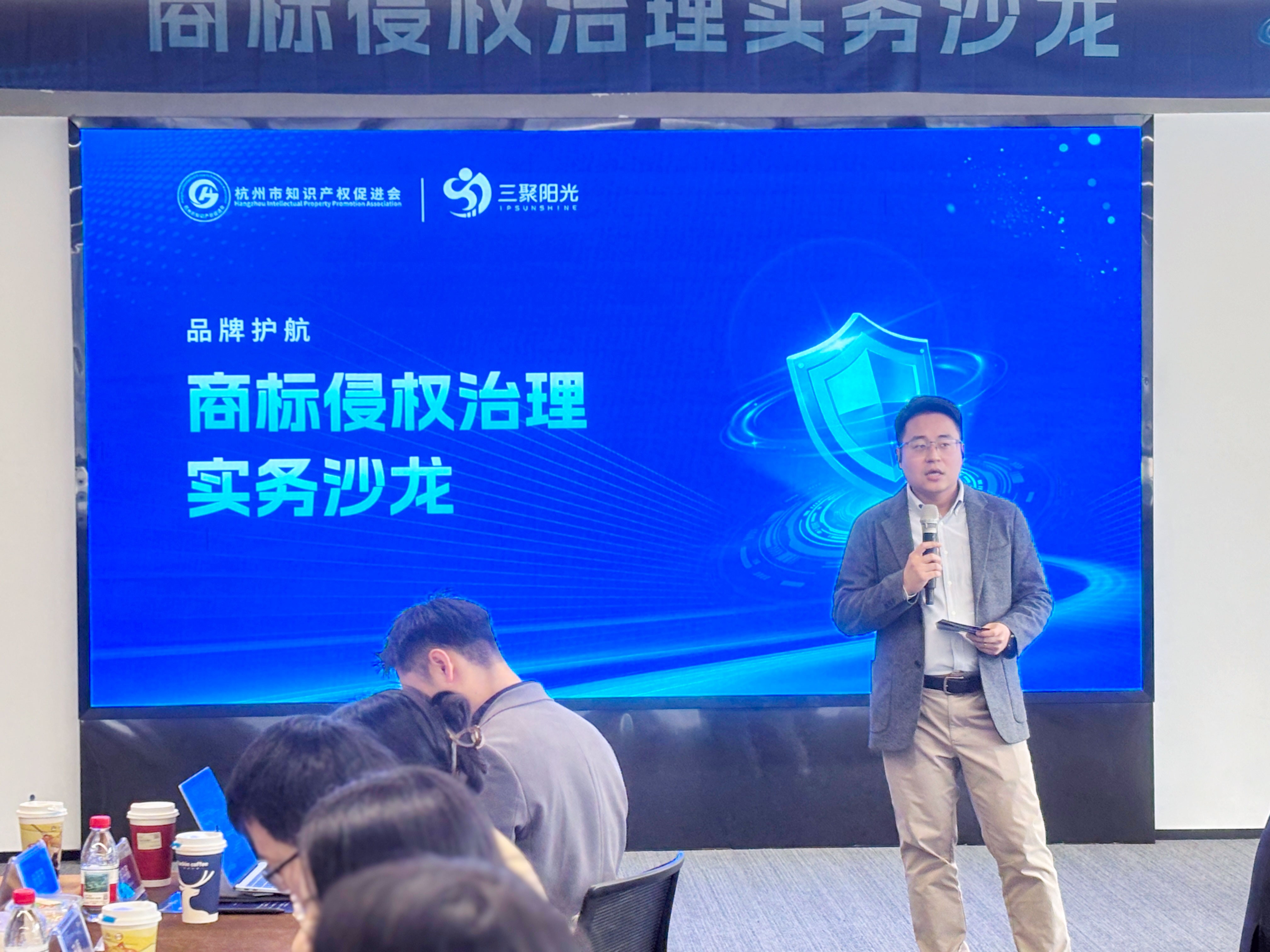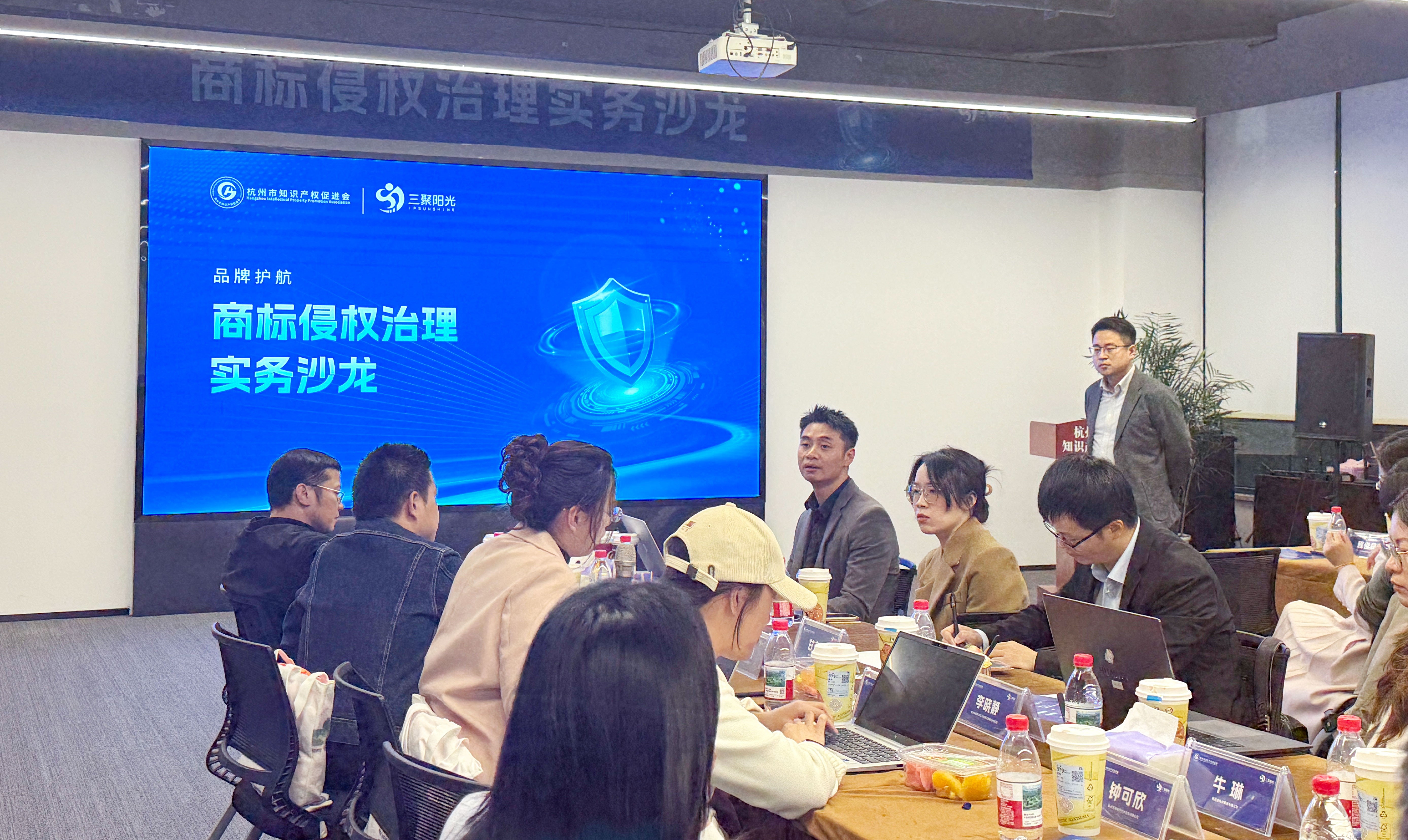 近日,由浙江省知識產(chǎn)權保護中心、杭州高新區(qū)(濱江)市場監(jiān)督管理局指導,杭州市知識產(chǎn)權促進會、浙江省中小企業(yè)協(xié)會知識產(chǎn)權專委會主辦,三聚陽光承辦的“品牌護航 商標侵權治理實務沙龍”在杭州順利舉辦。浙江省知識產(chǎn)權保護中心服務發(fā)展部部長張晉茂,杭州市知識產(chǎn)權促進會秘書長、杭州市知識產(chǎn)權交易服務中心總經(jīng)理程俊良受邀出席,三聚陽光浙江區(qū)副總經(jīng)理張鳴主持沙龍。