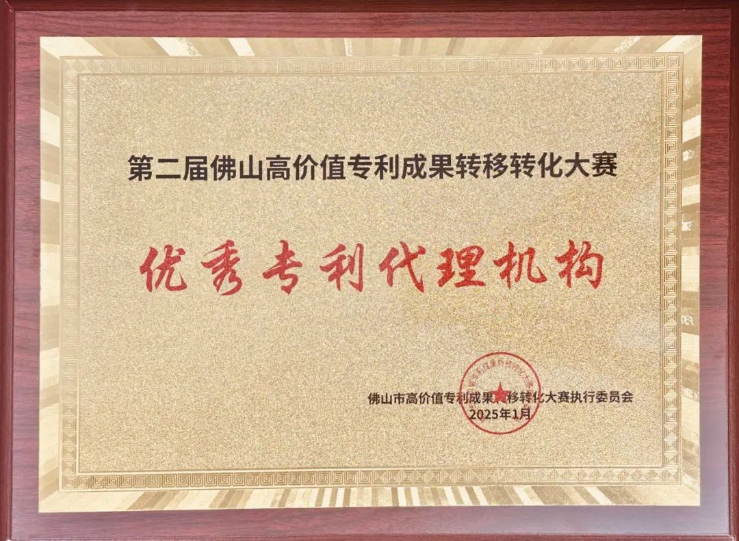 在第二屆佛山高價值專利成果轉(zhuǎn)移轉(zhuǎn)化大賽中,北京三聚陽光知識產(chǎn)權(quán)代理有限公司憑借在知識產(chǎn)權(quán)服務(wù)領(lǐng)域的專業(yè)表現(xiàn),榮獲大賽“優(yōu)秀專利代理機(jī)構(gòu)”獎項。