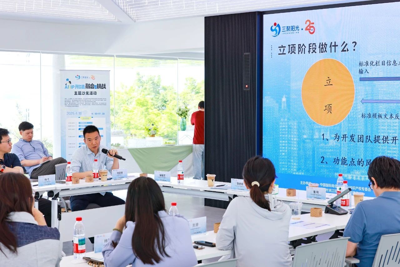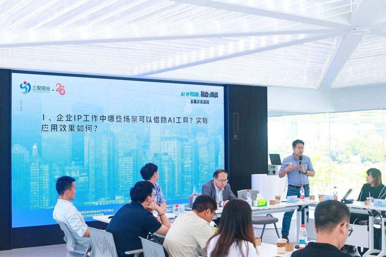 隨著人工智能(AI)技術(shù)的飛速發(fā)展及其對各行各業(yè)的深刻影響,知識產(chǎn)權(quán)(IP)領(lǐng)域正迎來前所未有的融合機遇與挑戰(zhàn)。在此背景下,三聚陽光與來自吉利集團、阿里巴巴集團、螢石網(wǎng)絡(luò)等知名企業(yè)知識產(chǎn)權(quán)負(fù)責(zé)人齊聚“AI&IP開放麥:融合與挑戰(zhàn)”主題沙龍,就AI與IP的融合及未來挑戰(zhàn)展開了討論。沙龍活動由中國國際商會杭州商會知識產(chǎn)權(quán)專委會與杭州市濱江區(qū)市場監(jiān)督管理局聯(lián)合主辦,三聚陽光及杭州分公司承辦。