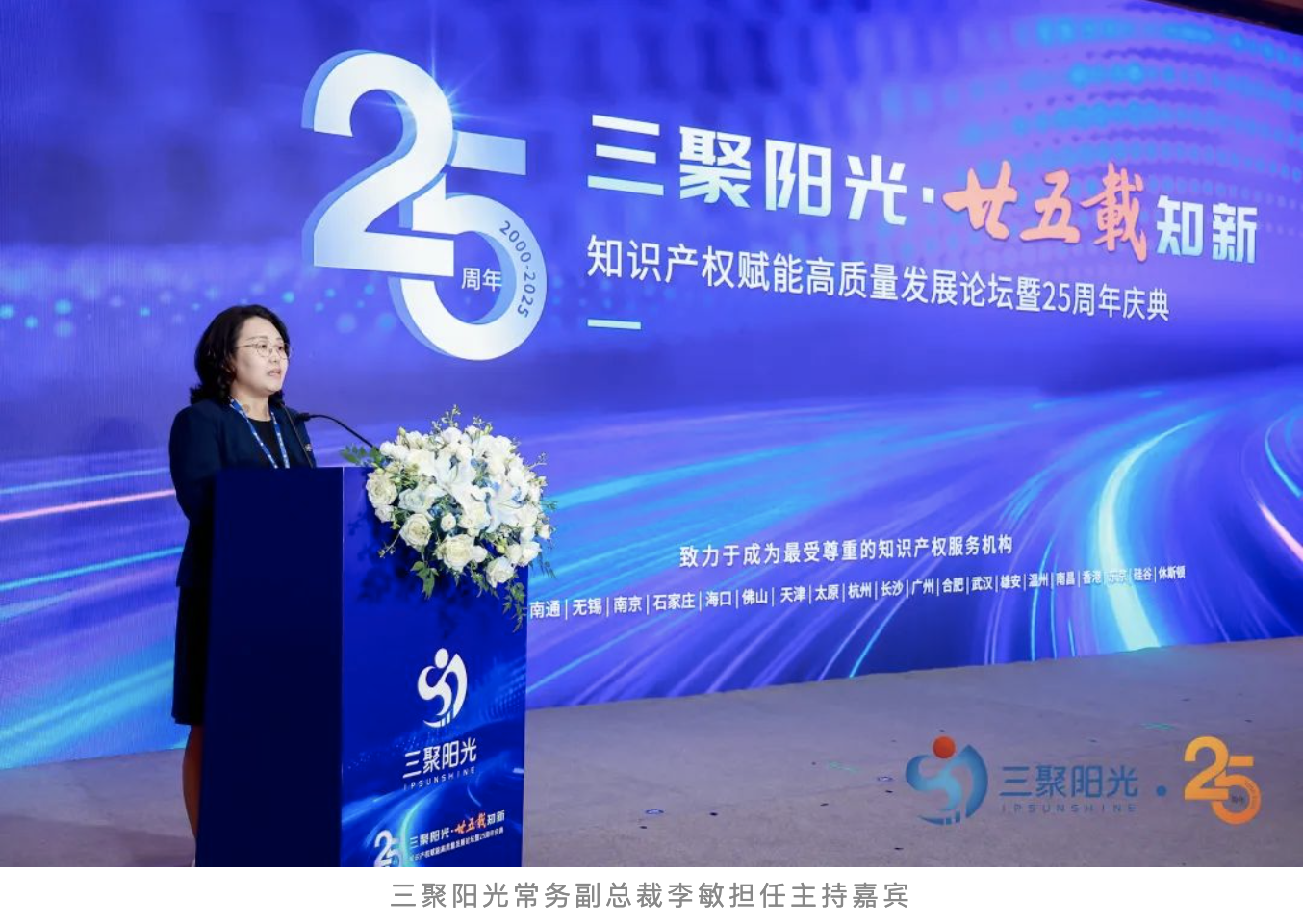 “三聚陽光?廿五載知新”知識(shí)產(chǎn)權(quán)賦能高質(zhì)量發(fā)展論壇暨25周年慶典活動(dòng)已圓滿落幕。正如張杰董事長在致辭中提到的,二十五載不過是歷史一瞬,回望來時(shí)路,我們努力拼搏獲得的上百個(gè)行業(yè)獎(jiǎng)項(xiàng),遠(yuǎn)不及客戶誠摯的信任更加珍貴。我們致力于成為最受尊重的知識(shí)產(chǎn)權(quán)服務(wù)機(jī)構(gòu),這份尊重隱藏在每次專業(yè)服務(wù)中的實(shí)干勁和專業(yè)范。要實(shí)現(xiàn)企業(yè)的核心競爭力持續(xù)躍升,唯有讓知識(shí)產(chǎn)權(quán)真正活躍起來。只有強(qiáng)大起來,才能讓每一份創(chuàng)新擲地有聲,讓創(chuàng)新者輕裝上陣,讓每一個(gè)企業(yè)家都能勇立潮頭。
