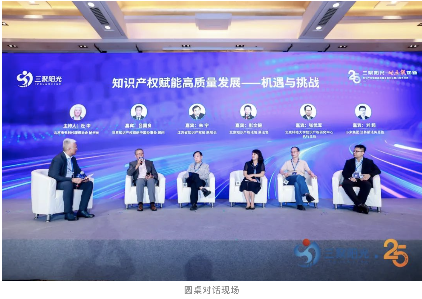 在主題為《知識(shí)產(chǎn)權(quán)賦能高質(zhì)量發(fā)展:機(jī)遇與挑戰(zhàn)》的圓桌對(duì)話環(huán)節(jié)中,來自政府、司法、學(xué)術(shù)界及企業(yè)界的多位重量級(jí)嘉賓齊聚一堂,圍繞知識(shí)產(chǎn)權(quán)展開了一場(chǎng)高屋建瓴、思想碰撞的深度交流。