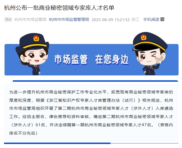 近日,杭州市市場(chǎng)監(jiān)督管理局發(fā)布《第二期杭州市商業(yè)秘密領(lǐng)域?qū)<胰瞬牛ㄉ嫱馊瞬牛┤霂?kù)名單》通知,并同步公布“續(xù)聘第一期專家名單”。其中,三聚陽(yáng)光總裁張建綱與法律業(yè)務(wù)負(fù)責(zé)人周美華續(xù)聘在列。